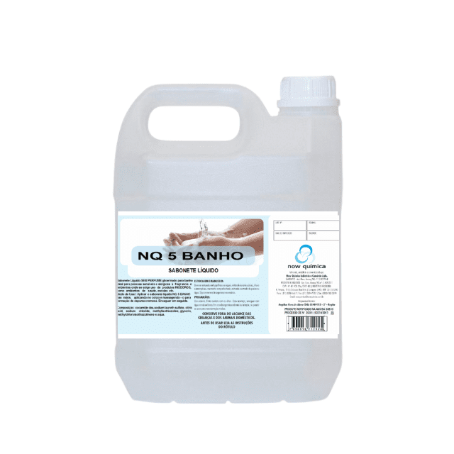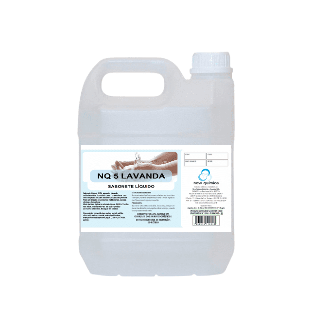 NQ 5 Lavanda é um sabonete líquido com pH neutro e alta espuma. Higieniza as mãos com um toque delicado e sedoso. Possui tensoativos biodegradáveis e perfumes deliciosos. Para aplicação em ambientes especiais como hospitais, centros de saúde, etc. Apresentação: Frasco de 5 litros.